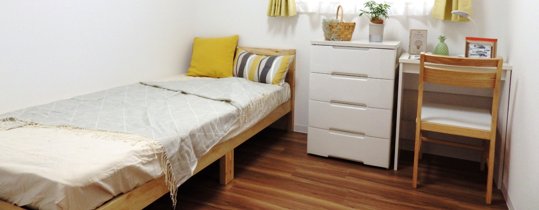 Of course the rooms are all private. Hooks for storage boxes and hanging objects are also available. There is an auto lock system at the entrance.