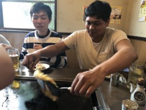 お好み焼き初体験のフィリピン人&インドネシア人